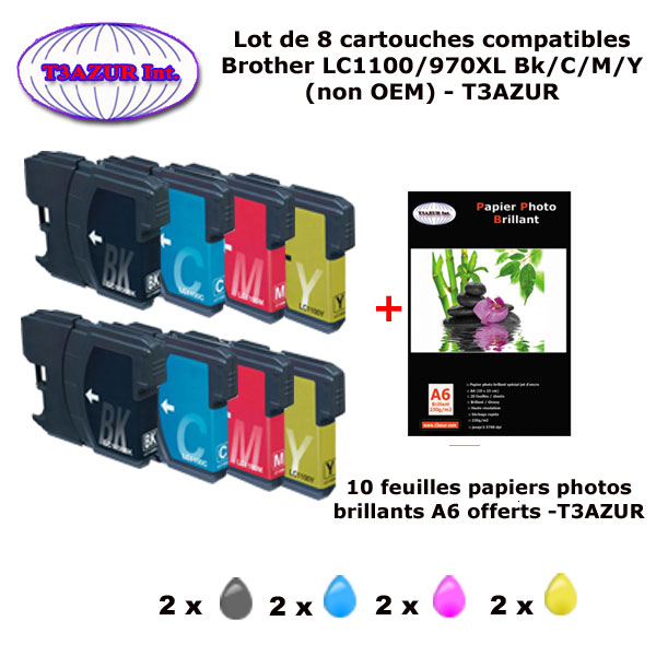 8 cartouches compatibles pour Brother LC1100 LC980 XL