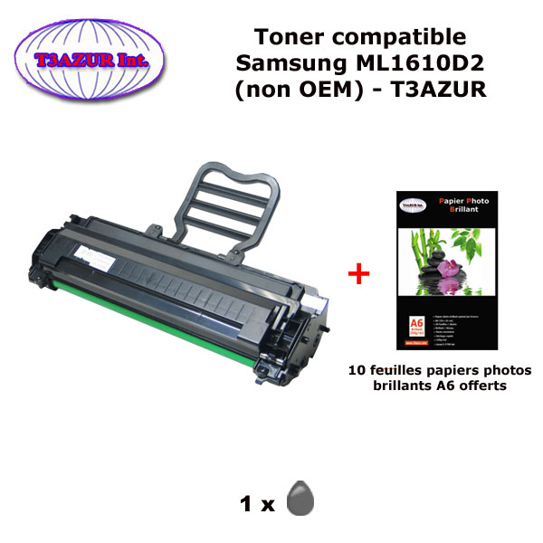 Toner compatible avec l'imprimante Samsung ML1610, ML1610D2, ML1615, ML1620, ML1625, ML2010, ML2010D3, ML2010R, ML2015, ML2020, ML2510, ML2570, ML2571, ML2571N, SCX4321, SCX4521, SCX4521D3, SCX4521F, ML1610D2 - Capacité: 3 000 pages - Pack de papiers photos A6 brillantes T3AZUR offert – Marque T3AZUR - Très bonne qualité - 100% Compatible - Garantie 1 an.