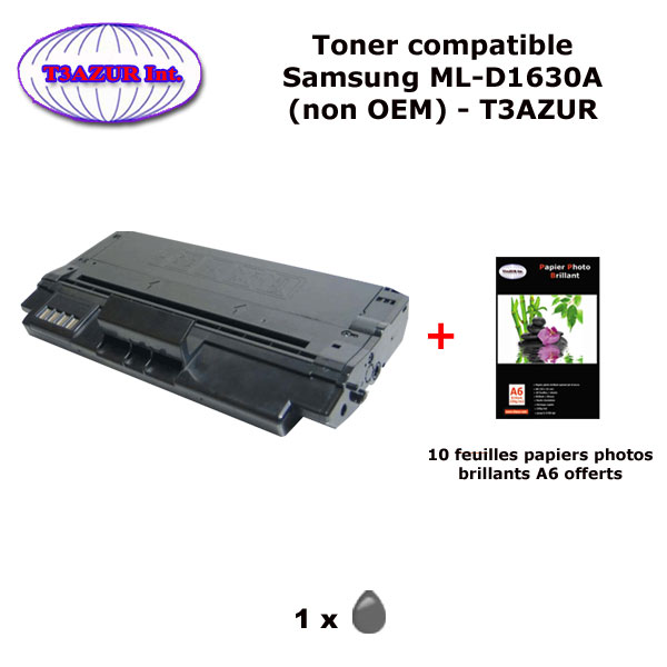 Toner compatible avec l'imprimante Samsung ML1610, ML1610D2, ML1615, ML1620, ML1625, ML2010, ML2010D3, ML2010R, ML2015, ML2020, ML2510, ML2570, ML2571, ML2571N, SCX4321, SCX4521, SCX4521D3, SCX4521F, ML1610D2 - Capacité: 3 000 pages - Pack de papiers photos A6 brillantes T3AZUR offert – Marque T3AZUR - Très bonne qualité - 100% Compatible - Garantie 1 an.