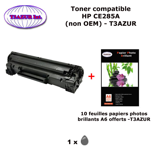 Toner compatible avec l'imprimante HP LaserJet M1132, M1212nf, M1212nf mfp, P1102, P1102W, P1109, HP LaserJet Pro M1132, M1212, M1212nf, M1214, M1217, M1217nfw, M1232, P1102, P1102w, HP P 1102, 1102w, HP 85A, CB285A - Capacité: 1 600 pages - Pack de papiers photos A6 brillantes T3AZUR offert – Marque T3AZUR - Très bonne qualité - 100% Compatible - Garantie 1 an.