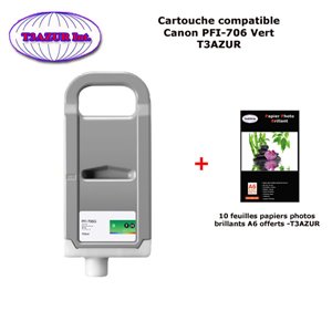 Cartouche d'encre compatible avec l'imprimante Canon iPF 8300, iPF 8300S, iPF 8400, iPF 8400S, iPF 8400SE, iPF 9400, iPF 9400S, PFI706, PFI306 - Volume: 700 ml – Réf.OEM: Canon PFI706/PFI306 - Pack de papiers photos A6 brillantes – Très bonne qualité - 100% Compatible - Garantie 1 an.Â