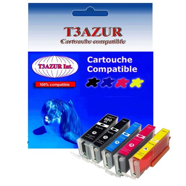 Cartouche compatible avec l'imprimante Canon Pixma TR7550, TR8550, TS6150, TS6151, TS6250, TS6251, TS705, TS8150, TS8151, TS8152, TS8250, TS8251, TS8252, TS9150, TS9155, TS9550, TS9551C, PGI580XXL , CLI581XL - Volume: 27ml + 12ml – Pack de papiers photos A6 brillantes – Très bonne qualité - 100% Compatible - Garantie 1 an.Â