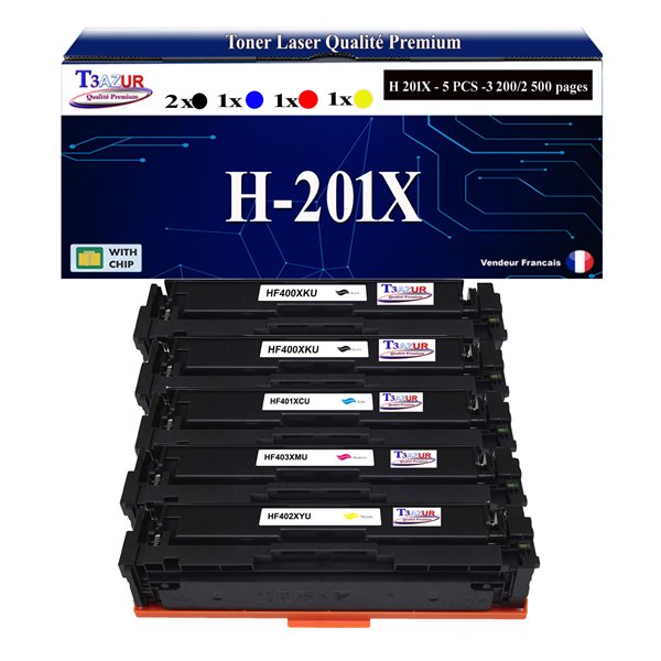 Lot de 5 Toners Lasers compatibles pour imprimante HP Color LaserJet Pro M252dw - T3AZUR