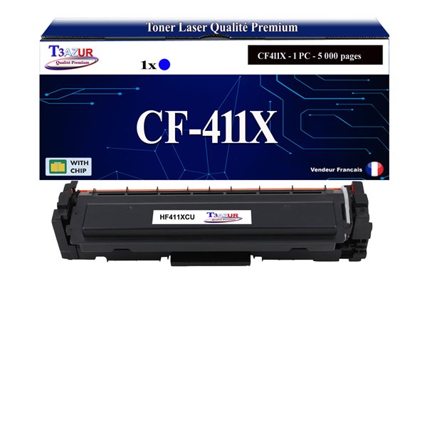 Toner Laser compatible type T3AZUR pour HP CF411X / 410X Cyan - 5 000p - T3AZUR