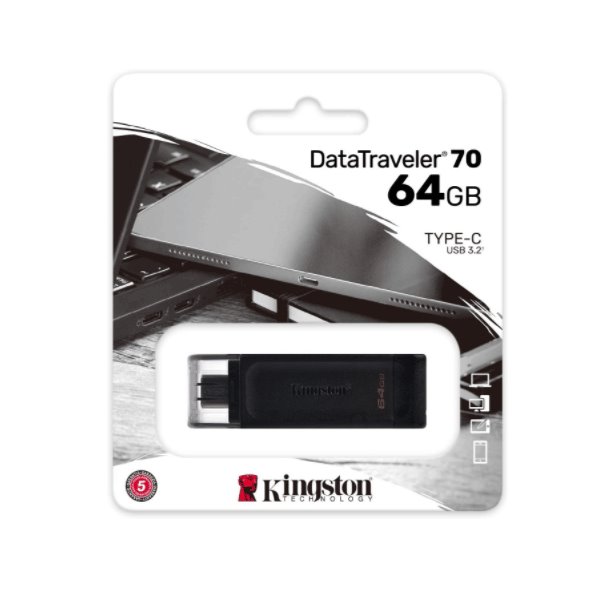 est une clé USB-C petite et légère qui atteint les vitesses USB 3.2 Gen 1. Elle a été conçue pour les appareils compatibles USB-C tels que les ordinateurs portables, ordinateurs portables, tablettes et smartphones. Avec des capacités allant jusqu'à 128 Go, DataTraveler70 vous permettra d'étendre le stockage pour une utilisation quotidienne. De plus, il bénéficie d'une garantie de 5 ans et d'un support technique gratuit.