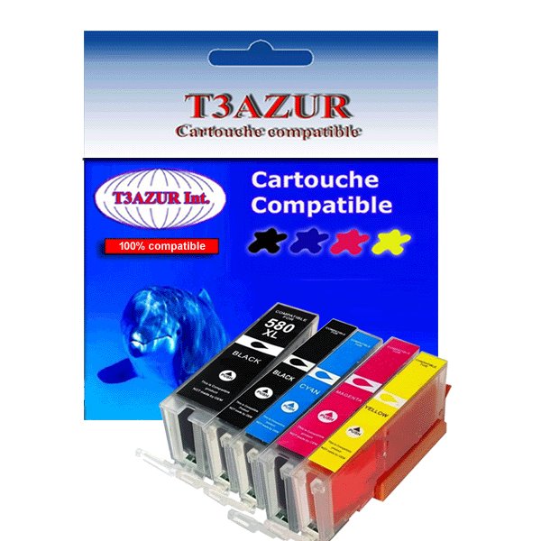 Cartouche compatible avec l'imprimante Canon Pixma TR7550, TR8550, TS6150, TS6151, TS6250, TS6251, TS705, TS8150, TS8151, TS8152, TS8250, TS8251, TS8252, TS9150, TS9155, TS9550, TS9551C, PGI580XXL , CLI581XL - Volume: 27ml + 12ml – Pack de papiers photos A6 brillantes – Très bonne qualité - 100% Compatible - Garantie 1 an.Â