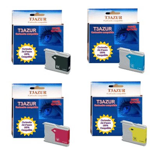 BROTHER: - DCP-105CN / 130C / 135C / 150C / 153C / 157C / 330C / 330CN / 350C / 353C / 357C /535CN / 540CN / 560CN / 680CN / 750CW / 750DN / 770CW . - Fax-1055 / 1355 / 1360 /1460 / 1560 . - MFC-235C / 240C / 3360CN / 440CN / 465CN / 5460CN / 5860CN / 660CN / 665CW / 680CN / 845CW / 850CDN / 850CDWN / 885CW. Ce lot comprend: -Â 1 cartouche Noire 18ml -Â 1 cartouche Cyan 18ml -Â 1 cartouche Magenta 18ml -Â 1 cartouche Yellow 18ml Â